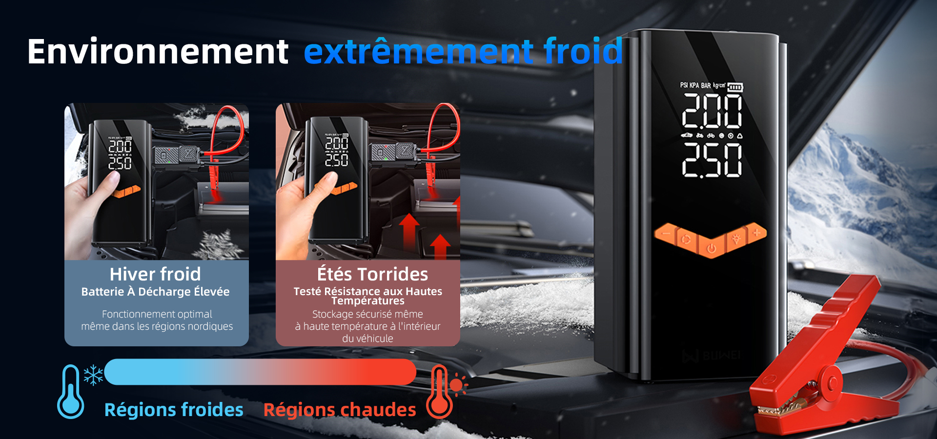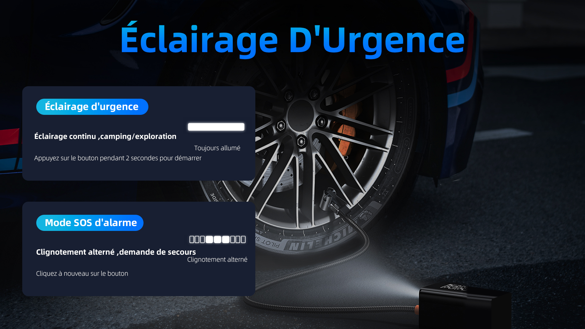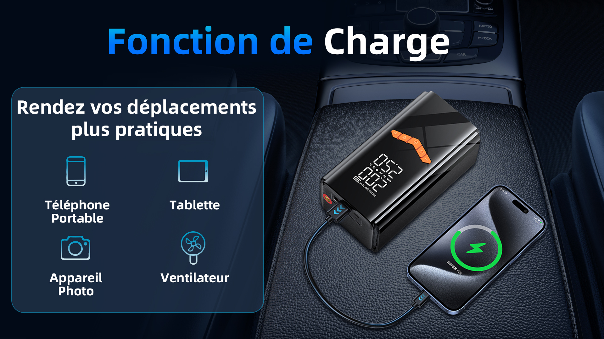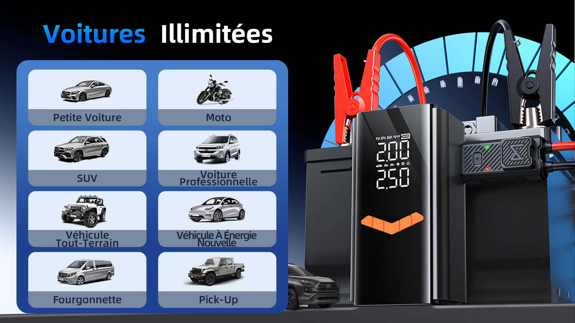 2-en-1 Gonfleur pneu & Booster batterie voiture portable