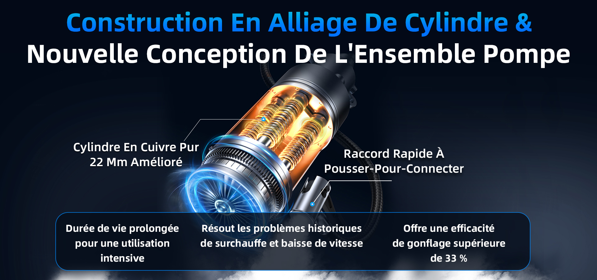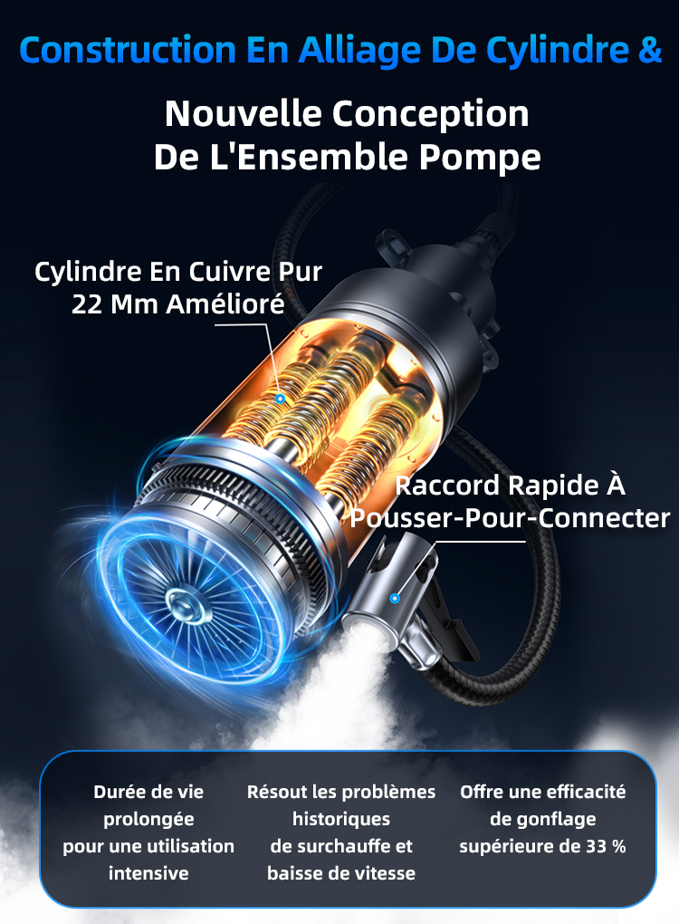 Nos pistons en alliage aérospatial tournent à 20 000 tr/min (accélération 33% plus rapide) pour générer un flux d'air puissant tout en consommant 33% d'énergie en moins.