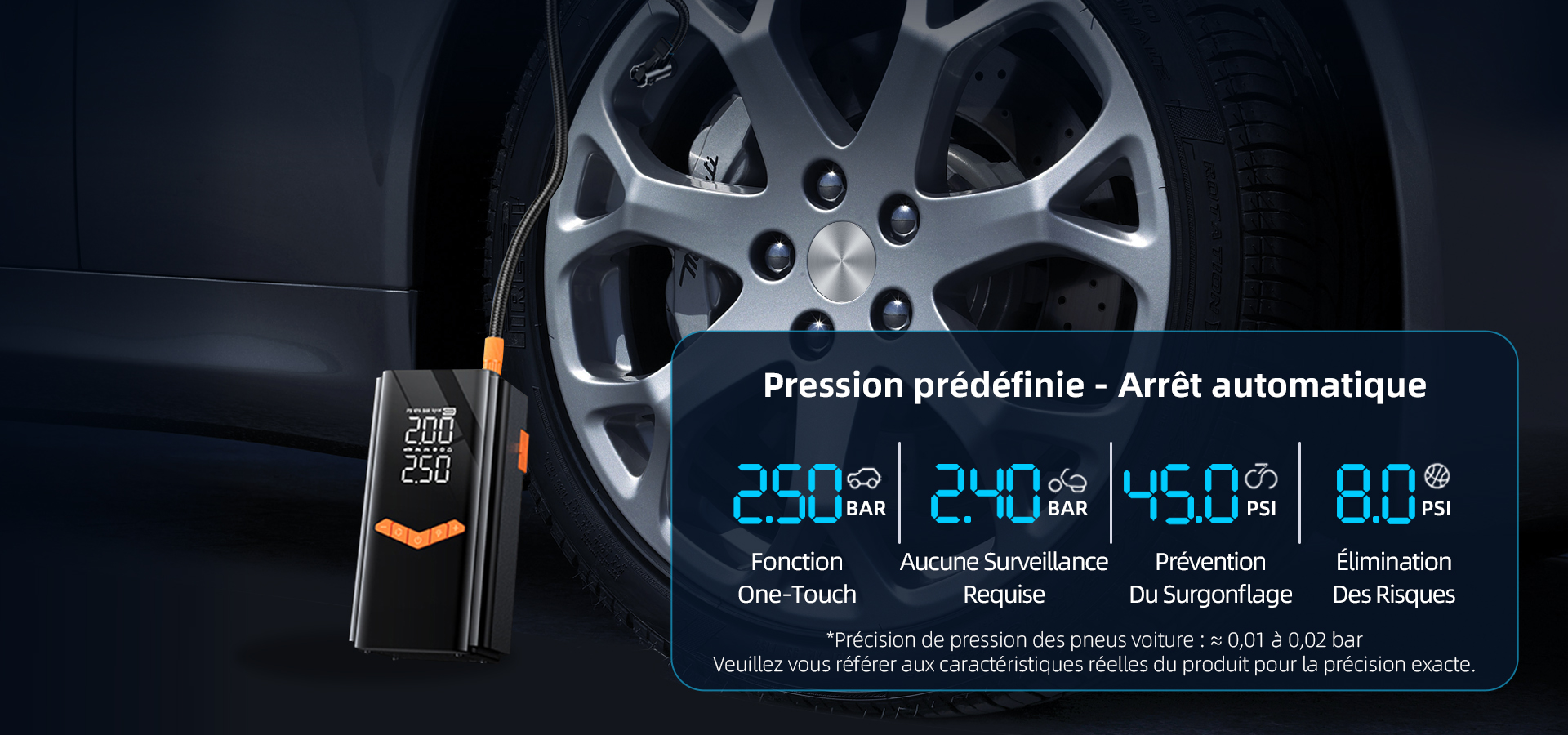 • Ajustez la pression cible avec les boutons "+" / "-" (arrêt automatique une fois atteinte).