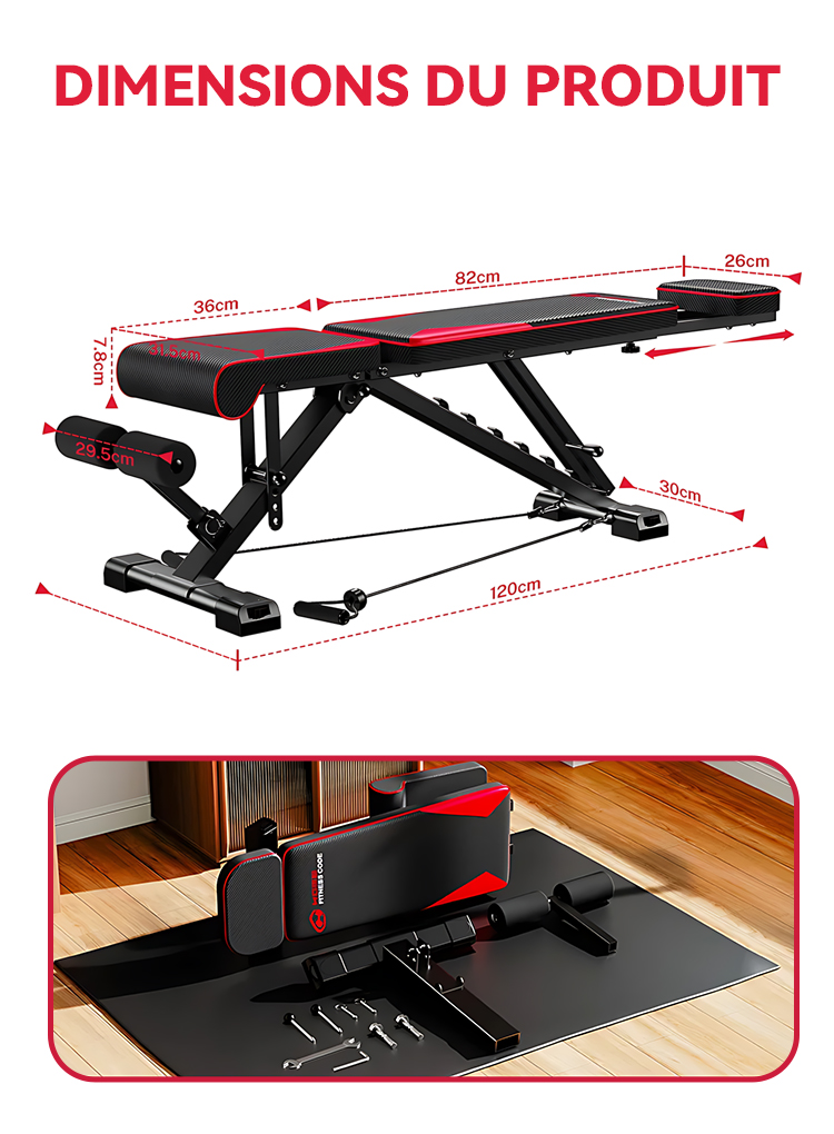 BANC DE MUSCULATION RÉGLABLE POLYVALENT