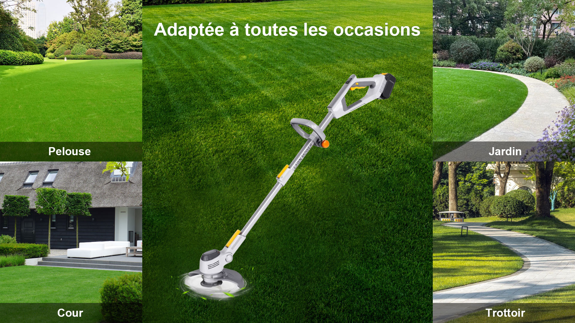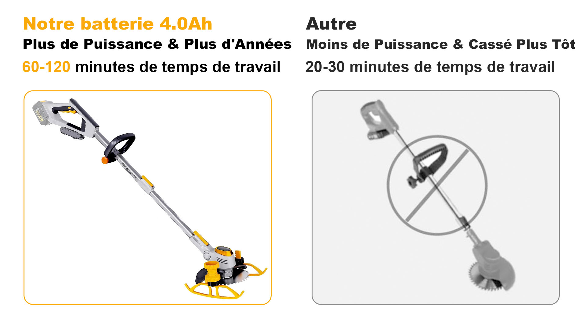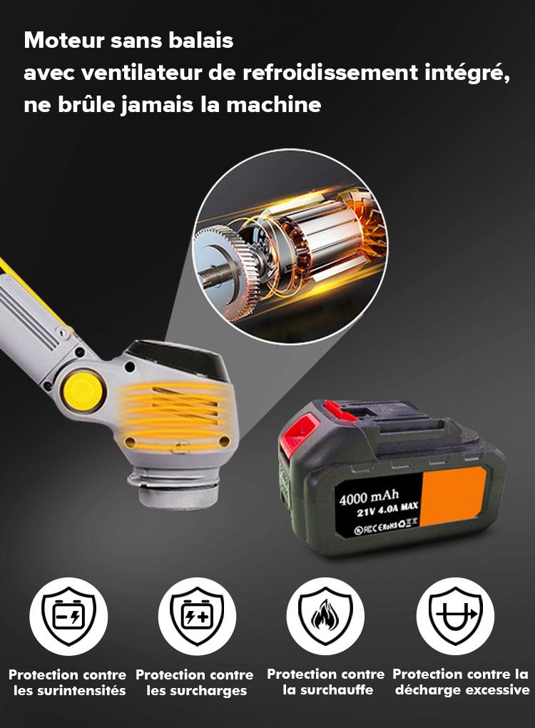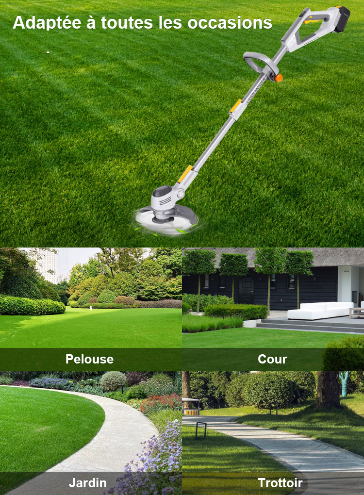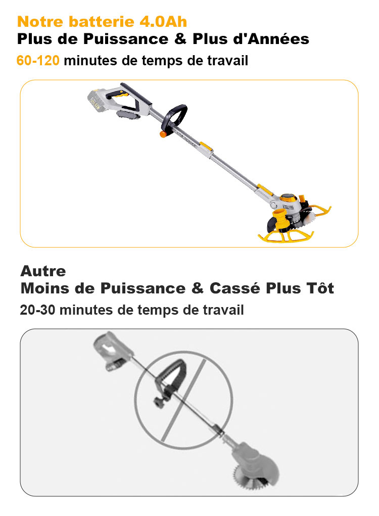 La Poignée Télescopique Qui S'étend Jusqu'à 1,5 Mètre, Peu Importe La Taille, Offre Un Maximum De Sécurité Et De Confort Pour Le Travail, Et La Nouvelle Débroussailleuse À Batterie Est Équipée De Roues De Support Coulissantes Pour Une Utilisation À Une Main Et Un Plus Grand Confort D'utilisation.