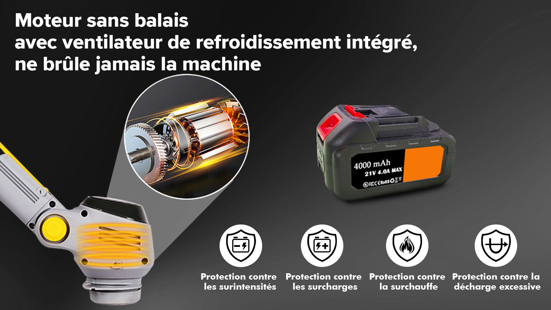 Protégez contre les contacts accidentels avec les lames de coupe tranchantes. Il protège également la débroussailleuse elle-même en déviant les roches et autres objets qui pourraient endommager les lames ou le corps de la machine. Cela améliore grandement la sécurité lors de l'entretien de la pelouse, garantissant un environnement plus sûr pour les opérateurs et réduisant le risque de dommages matériels.