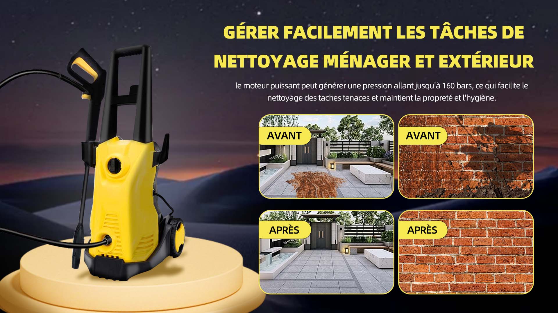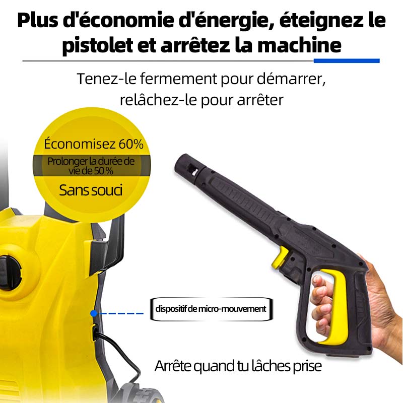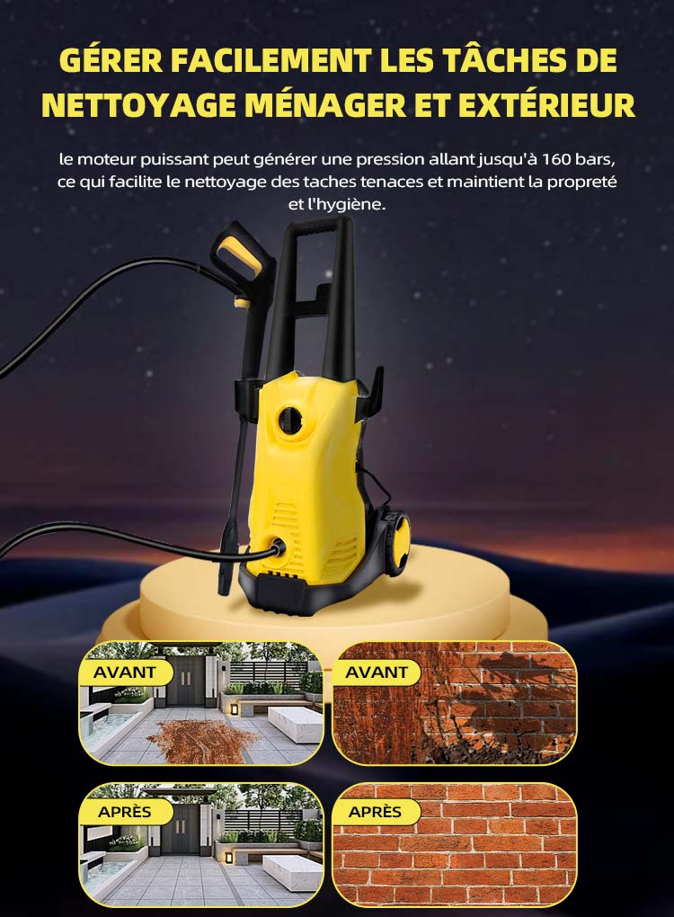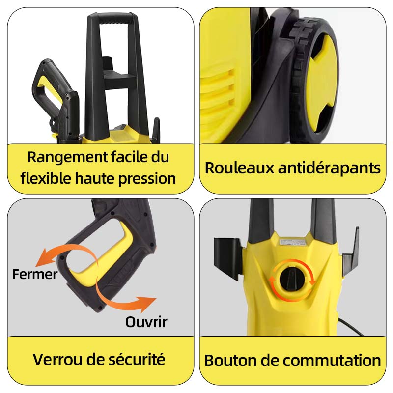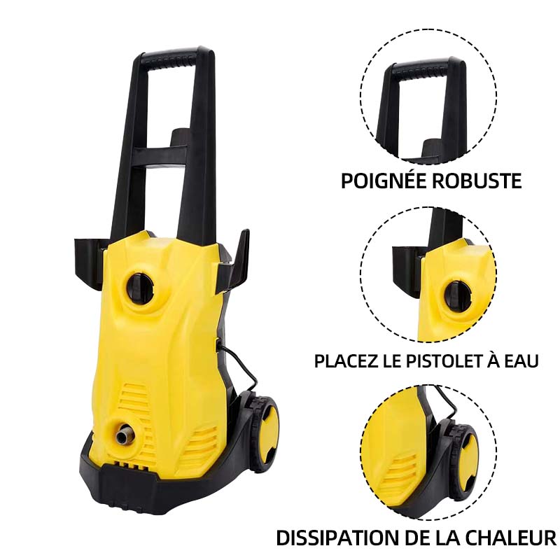Notre nettoyeur haute pression est conçu pour une utilisation robuste et étanche, garantissant des performances fiables même dans les environnements les plus exigeants. Qu'il s'agisse de travaux extérieurs ou de nettoyage intérieur, il est conçu pour résister à l'eau sans compromettre l'efficacité ni la sécurité. Il prolonge ainsi la durée de vie de l'équipement.
