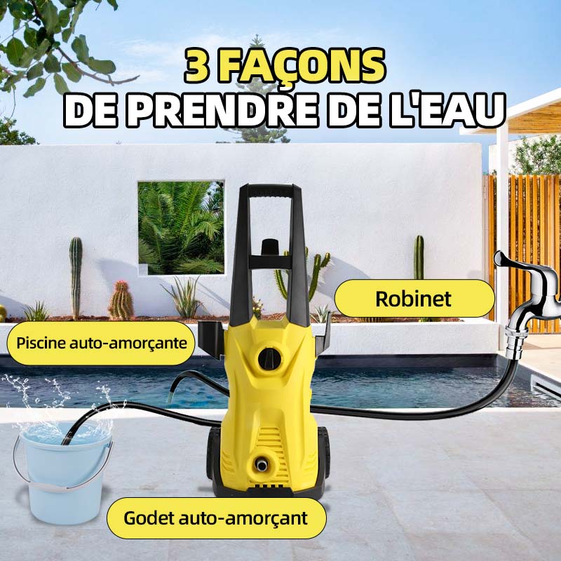 Le nettoyeur haute pression offre une gamme variée de modes d'alimentation d'eau, répondant aux préférences et aux besoins pratiques des utilisateurs. Avec trois options principales disponibles, les utilisateurs peuvent facilement choisir la méthode d'alimentation la mieux adaptée à leurs tâches de nettoyage : alimentation par robinet, alimentation par piscine ou alimentation par seau.