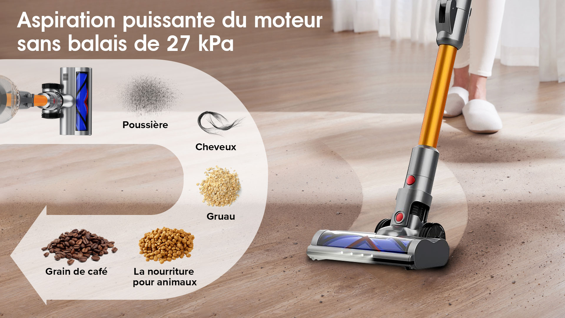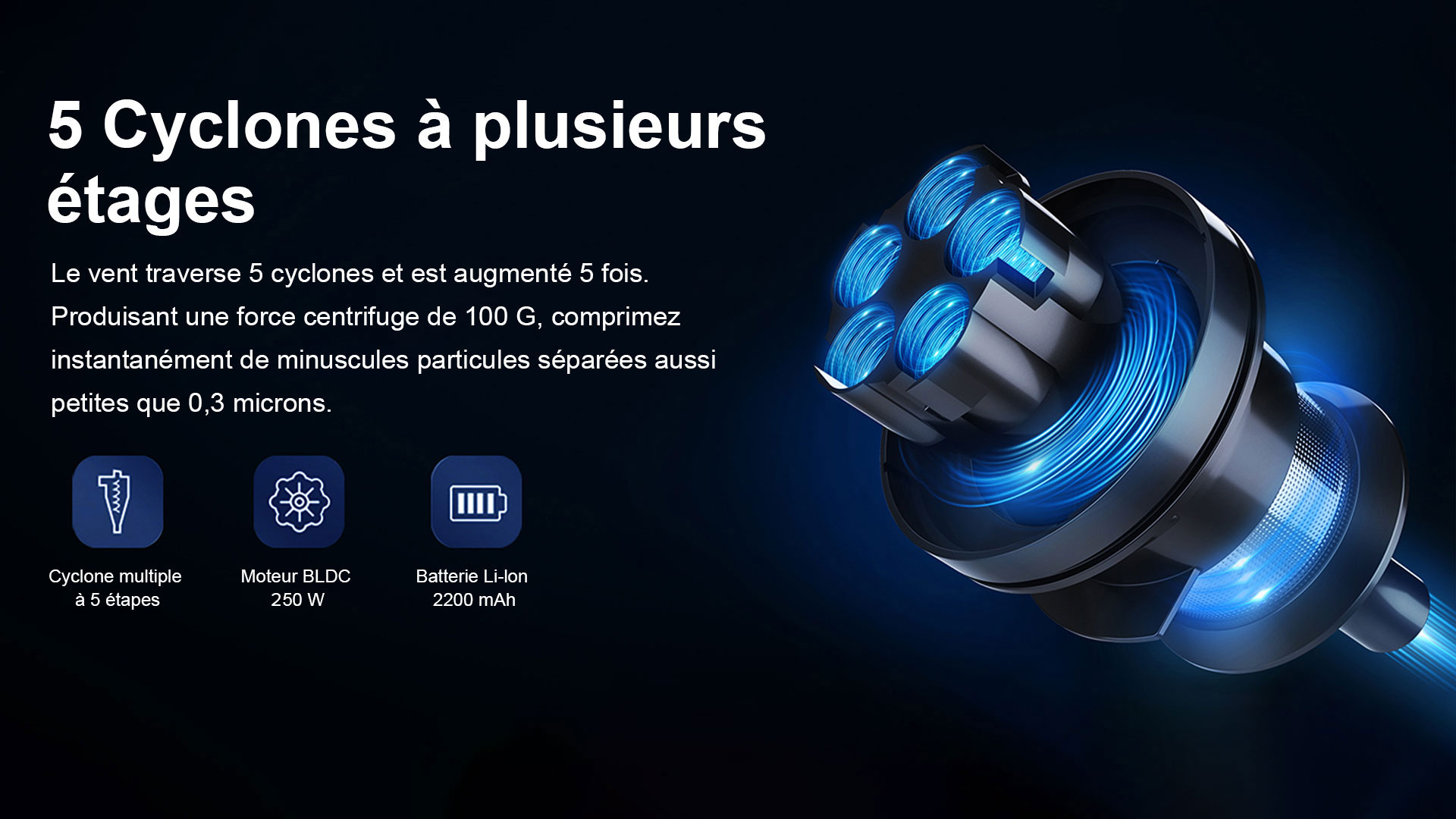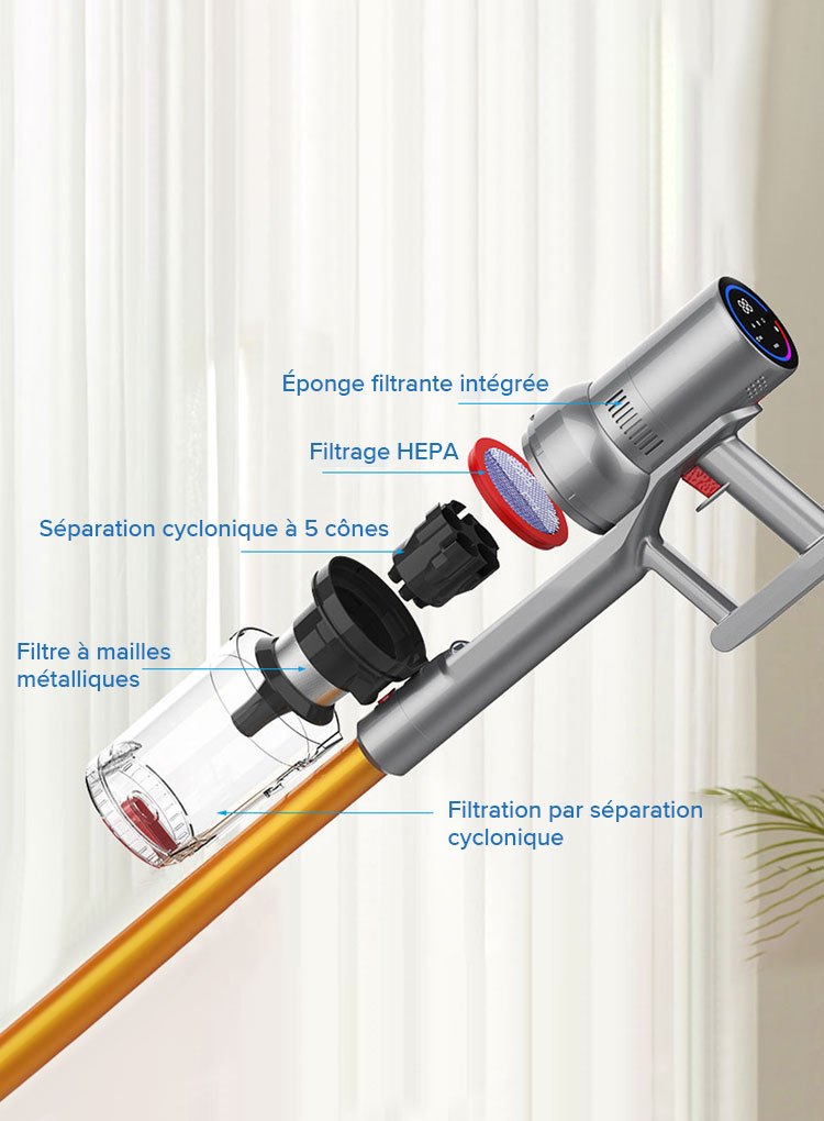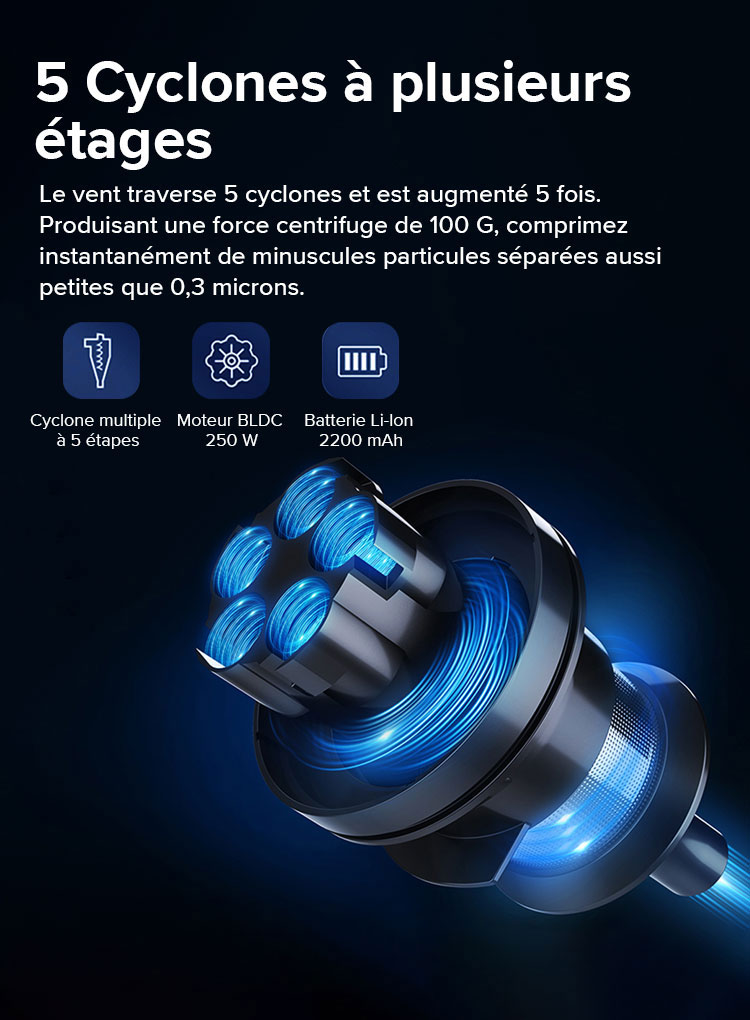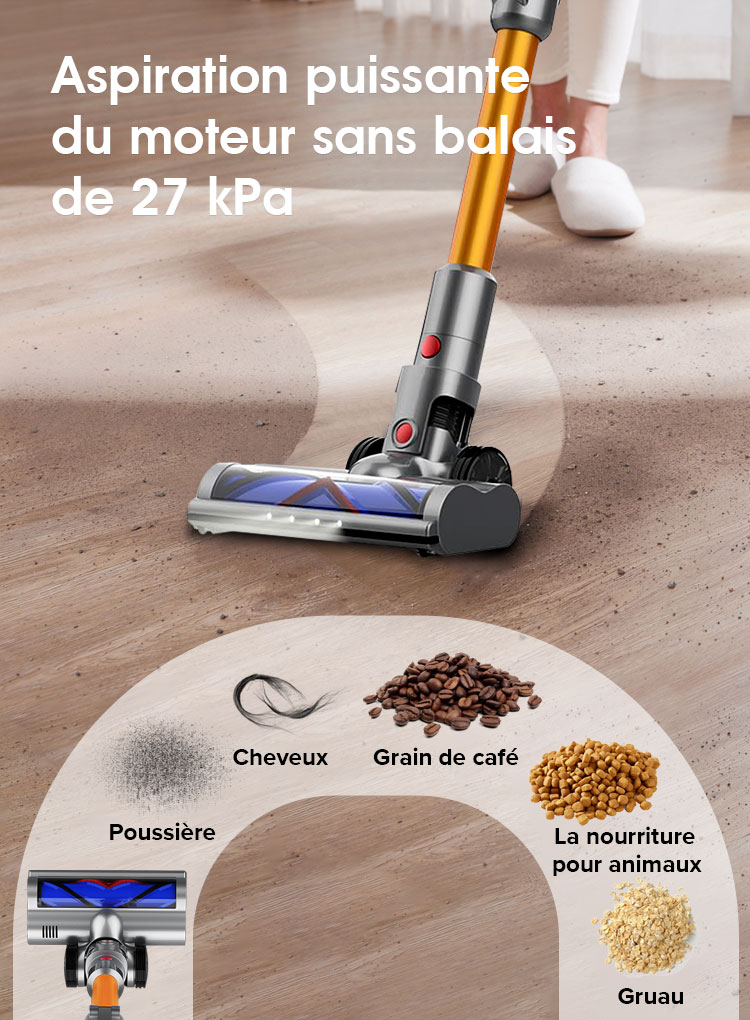 Le puissant moteur X9 du tourne à plus de 125 000 tours par minute, créant une aspiration de plus de 27 000 Pa. Il est presque capable d'aspirer tous les types de débris.