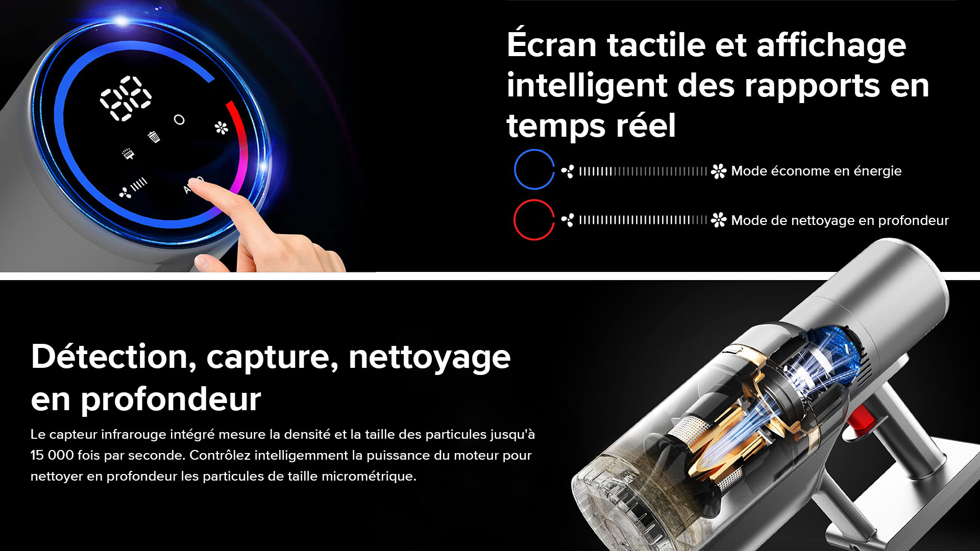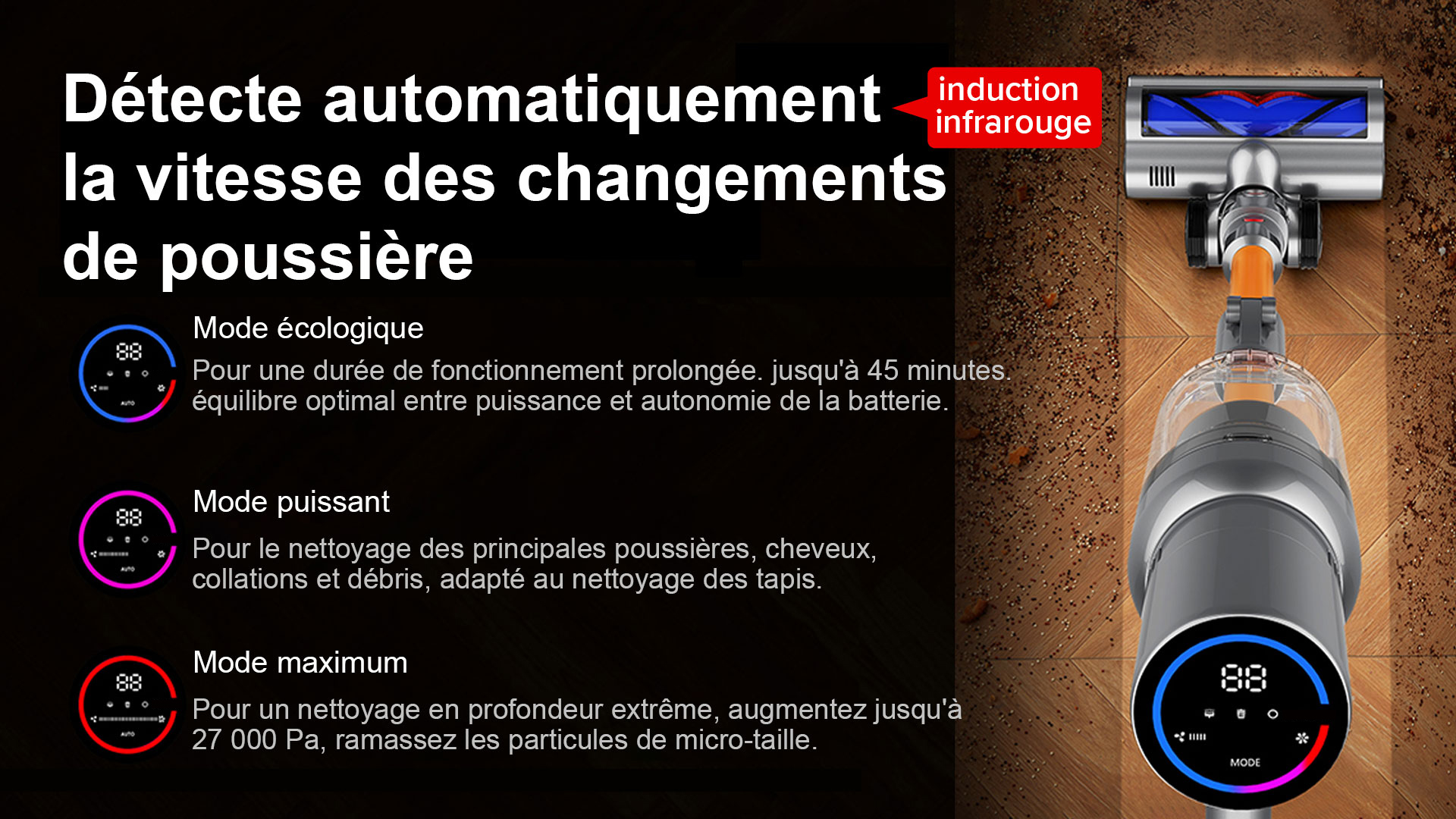 Détectez les poussières intenses, passez en mode boost