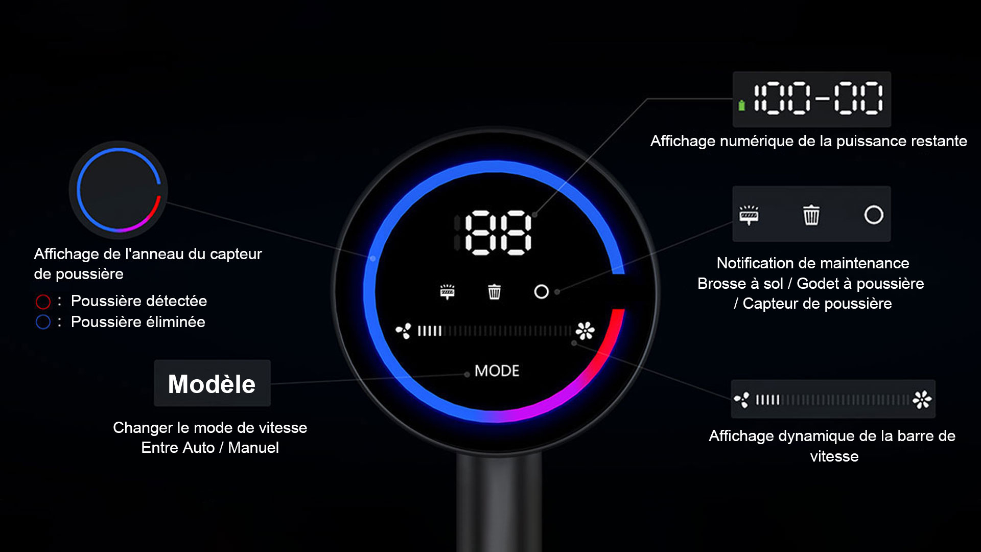 Smart Ring Detect ™ - Détectez la poussière du sol en temps réel et changez dynamiquement la couleur de l'anneau sur l'écran LED
